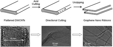 زمانی که نانولولههای قطور همانند آستین لباس روی زمین میافتد، لبههای تا خورده آن دارای پیوند کربن-کربن پرانرژی خواهد شد. این نقاط مستعد باز شدن توسط اسید هستند. در صورت استفاده از اسید پیوند کربن-کربن در این نقاط باز شده و در نهایت نانوروبانهای گرافنی یکنواختی ایجاد میشود.